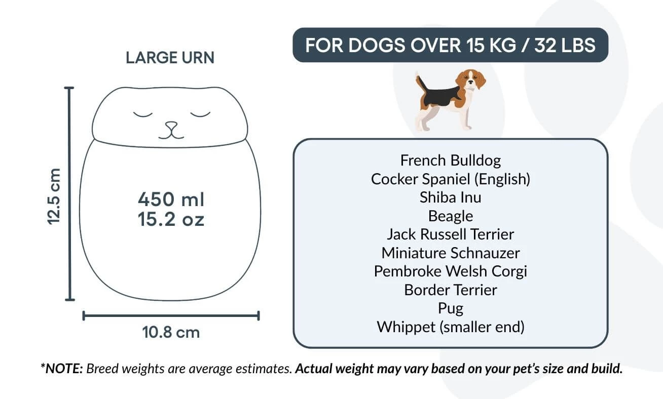 Personalised Ceramic Dog Urn with Sleeping Pet Lid – Pet Cremation Urn for Ashes with Name, Dates & Eternal Love Design