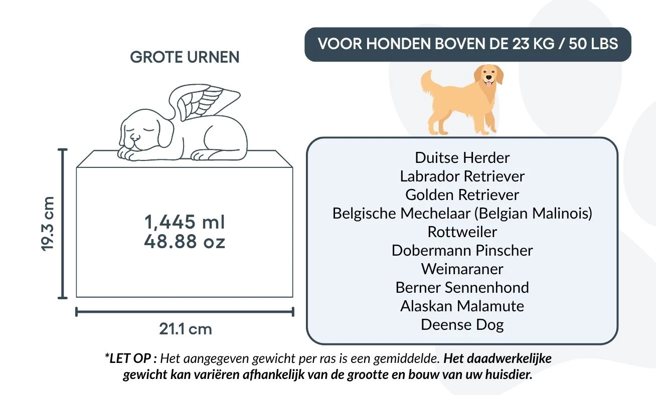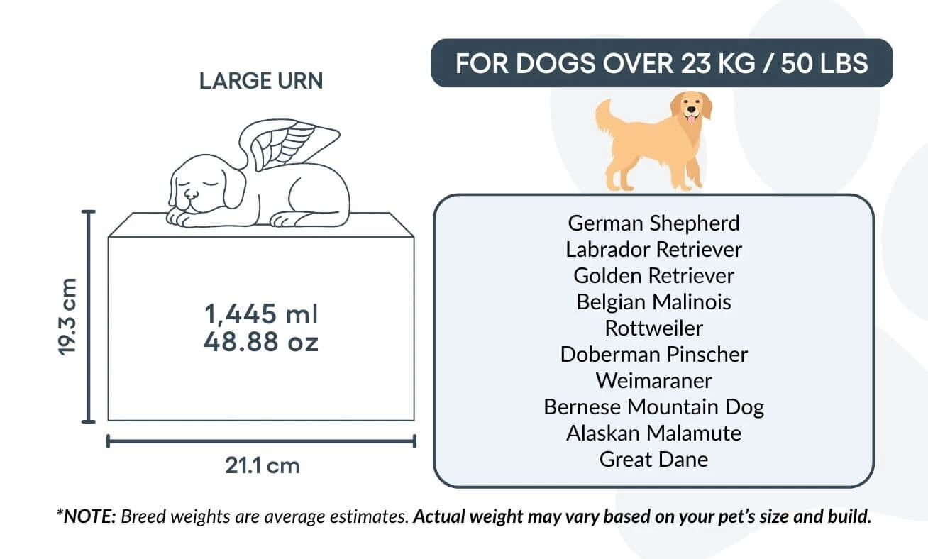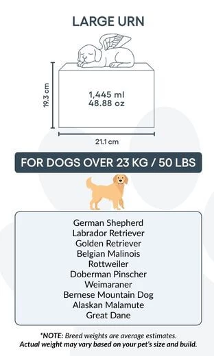 Personalised Wooden Dog Urn Box with Angel Dog Statue –  Pet Cremation Urn for Ashes with Name, Dates & Tribute
