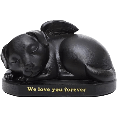 Realizzata in resina resistente e durevole, questa urna finemente dettagliata raffigura un cane angelo che riposa in un sonno eterno—simbolo di devozione, protezione e pace senza fine. Lo scomparto interno discreto custodisce con sicurezza le ceneri del tuo cane, offrendo un memoriale dignitoso e armonioso con qualsiasi ambiente naturale.