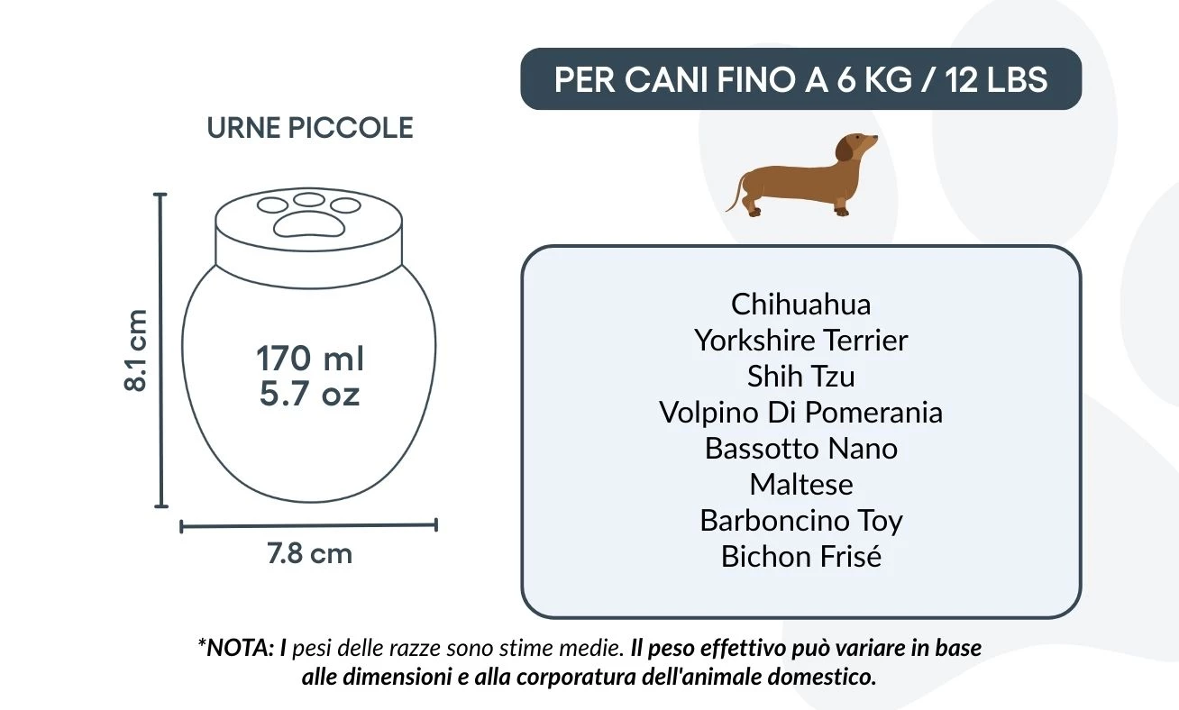 Disponibile in diverse dimensioni per adattarsi a cani di tutte le razze, questa urna con foto è ideale per la cremazione e il ricordo degli animali domestici.