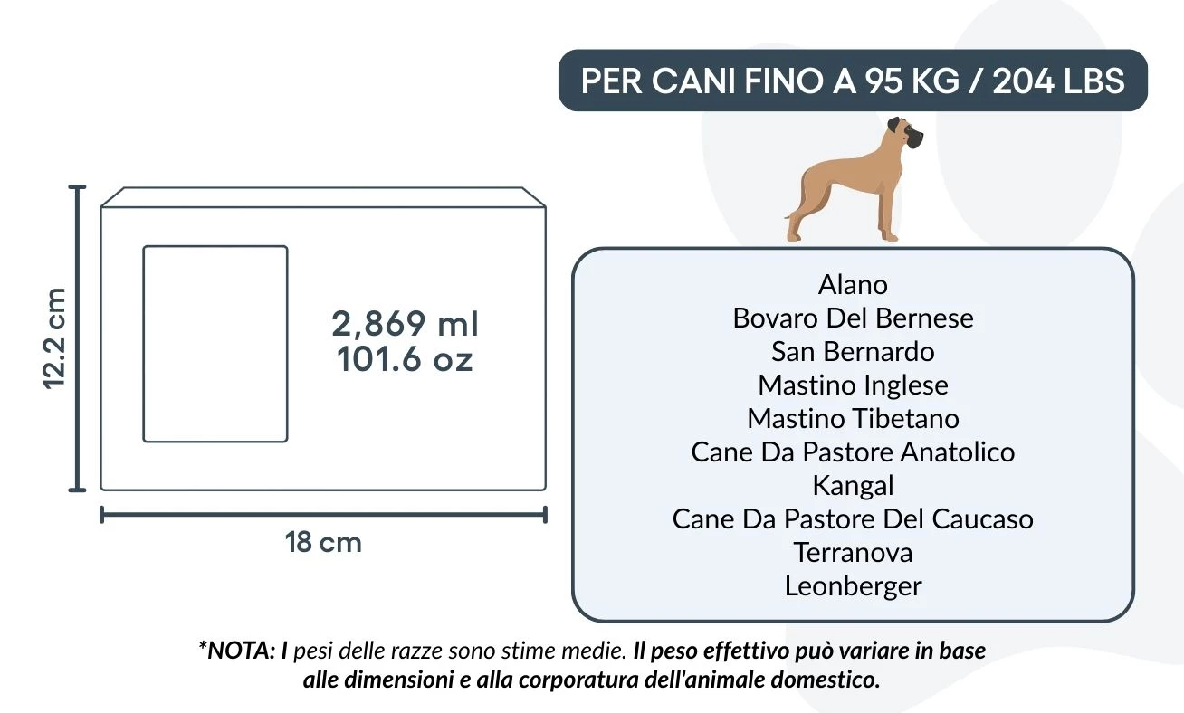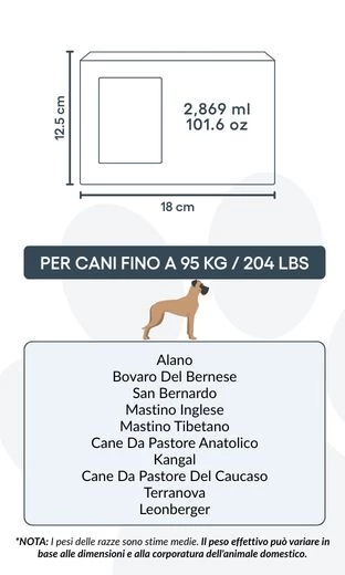 Nota: le stime di volume si basano su valori medi di cremazione degli animali domestici. Si consiglia di considerare peso e corporatura del proprio animale nella scelta dell’urna.