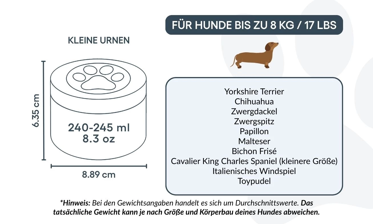 🤍 Compatta e sicura – ideale per le ceneri di cani di piccola e media taglia