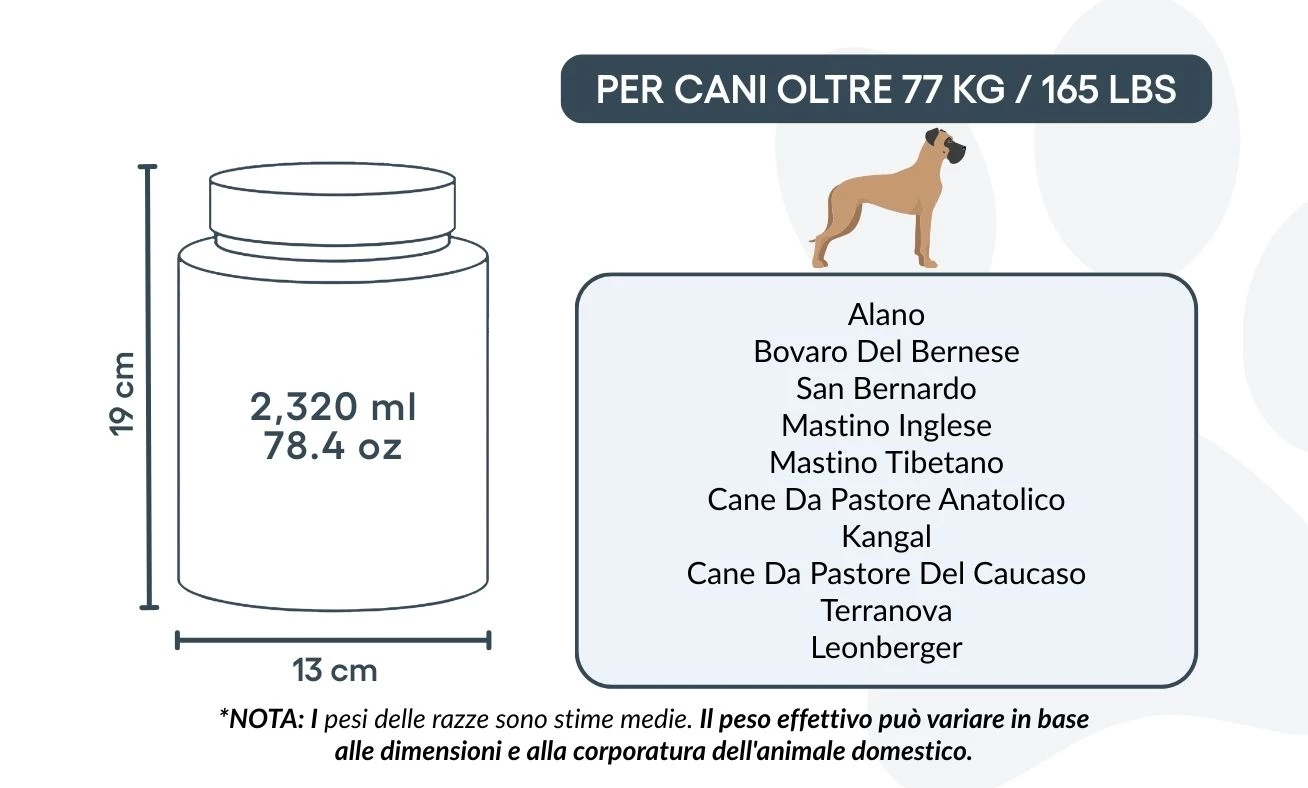 Adatta a cani fino a circa 77 kg / 165 lbs