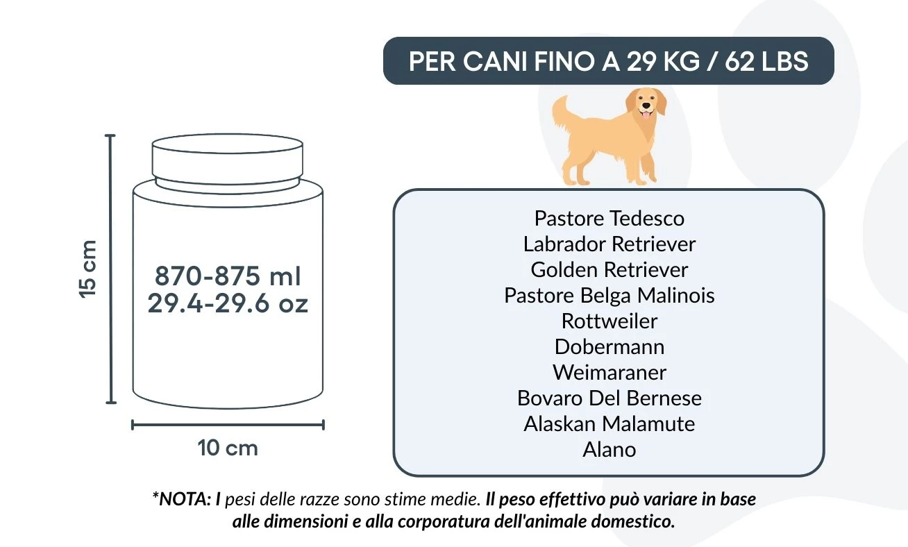 Adatta a cani fino a circa 29 kg / 62 lbs